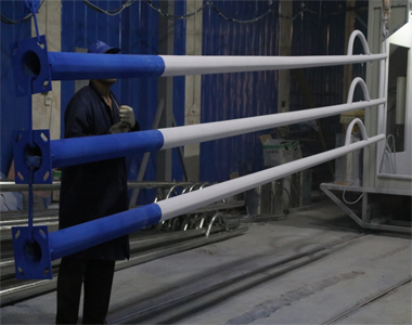 3.燈桿表面噴塑厚度≥100um,附著力達到GB9286-880級,表面光滑:硬度≥2H,采用室外耐候性材料,噴塑材料為全聚酯塑粉。